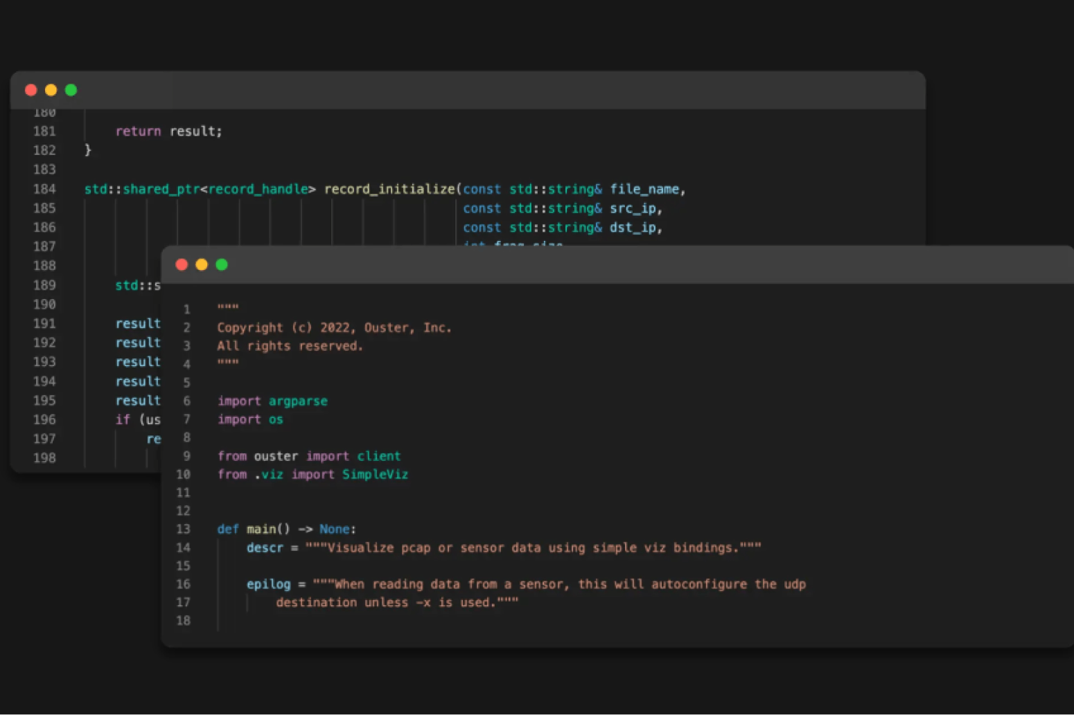 The Ouster SDK allows developers to build on any platform with Python or C++ and use their favorite libraries to prototype, develop, and maintain applications more efficiently.